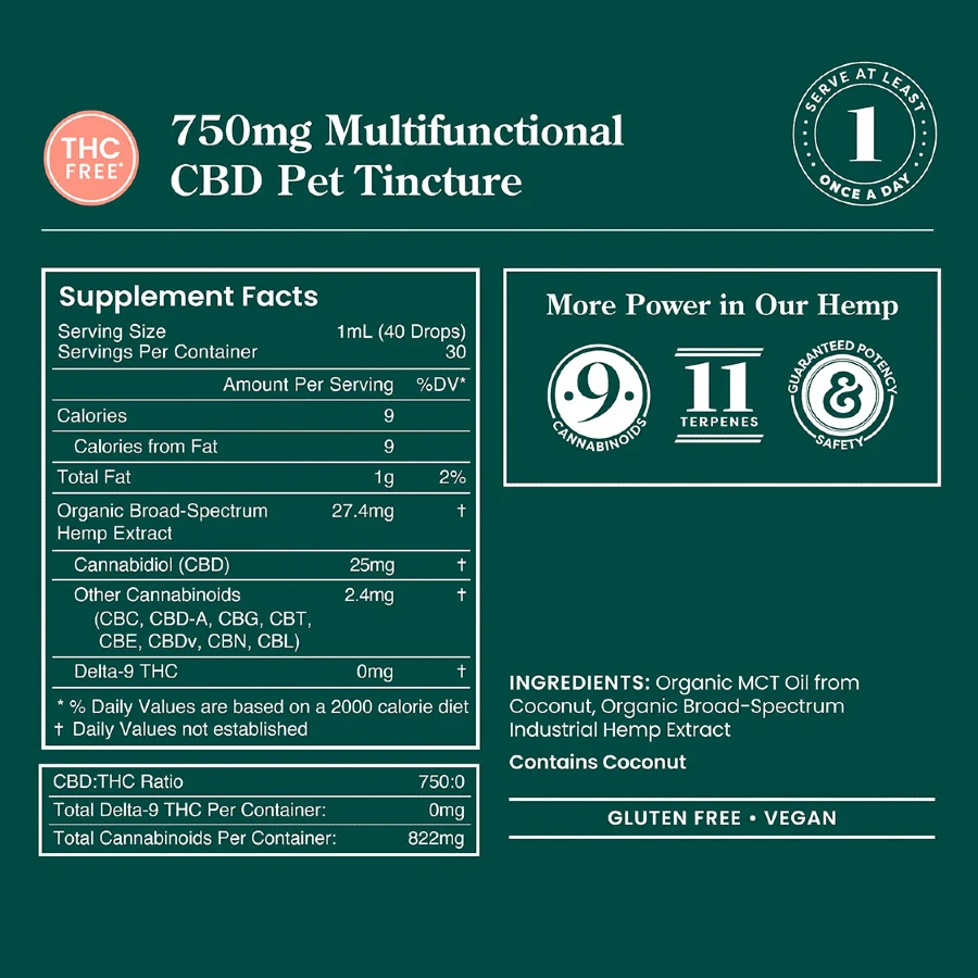 USDA Organic Pet CBD Oil Tincture – Broad Spectrum 750mg